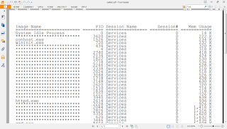 We just pipe the output of TASKLIST to StdinToPDF.py (an xtopdf app), which can be used at the end of any arbitrary command pipeline that generates text (on Unix / Windows / Linux / Mac OS X), to convert that text to PDF.